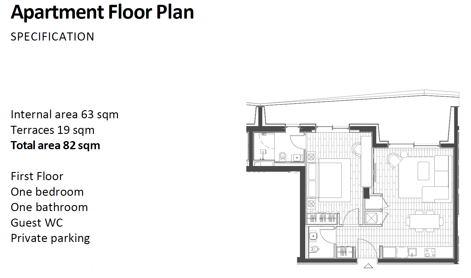 Located directly on the waterfront, with the partiel sea view, within the prestigious Marina Residences of Portonovi, this elegant one-bedroom apartment offers a refined marina-front lifestyle in one of the Adriatic’s most exclusive year-round destinations. Situated on the first floor of Marina Residence M2, Apartment B105 features a total sellable area of 82 sqm, comprising 63 sqm of internal living space complemented by 19 sqm of private terraces. The layout is thoughtfully designed to maximize comfort and flow, with an open-plan living and dining area extending seamlessly onto the terrace, ideal for enjoying the vibrant marina atmosphere.
